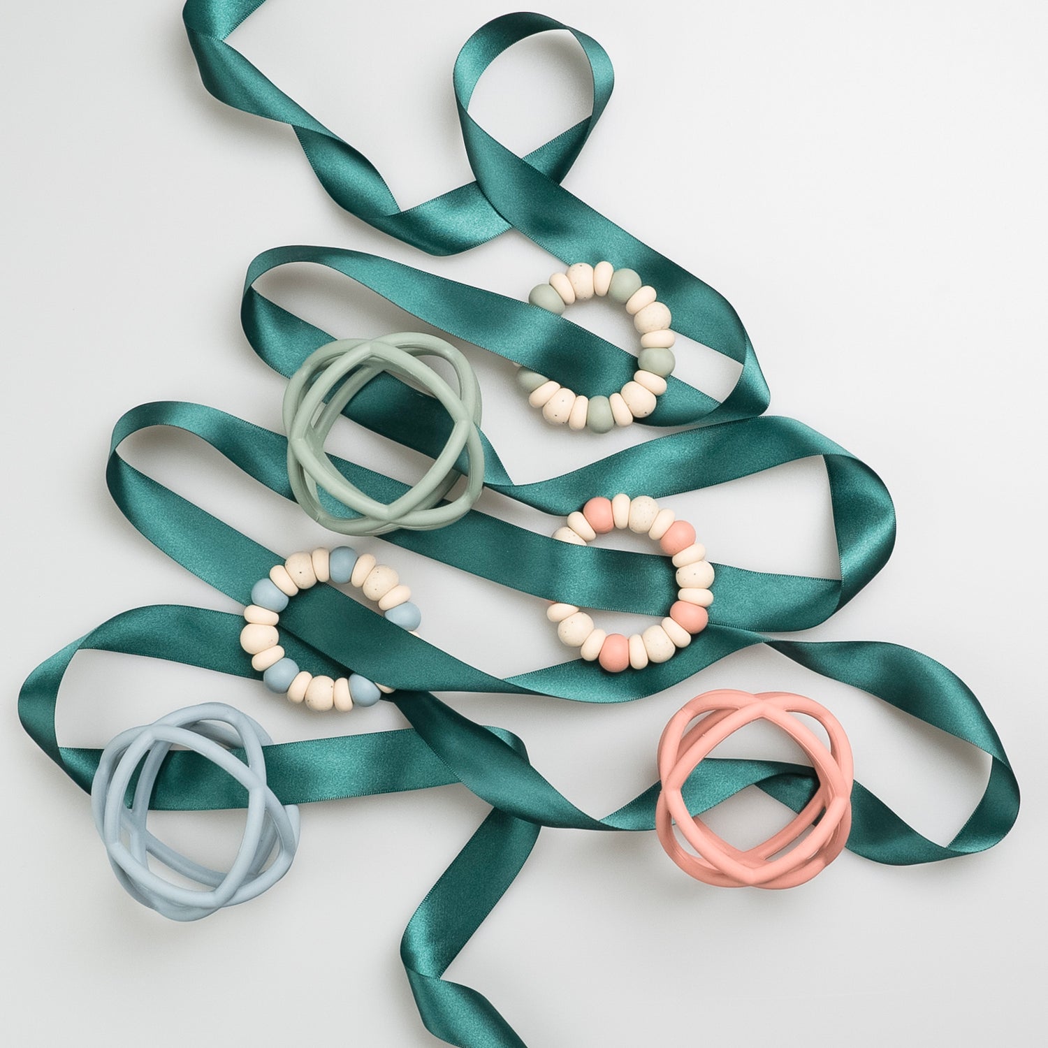 La BOX “DISCOVERY” - Christmas Edition comprende due giochini multisensoriali: la sfera Yummi e l‘anello Bloom; due valide proposte per allenare quella primordiale competenza dei nostri piccoli di afferrare gli oggetti e portarli alla bocca.